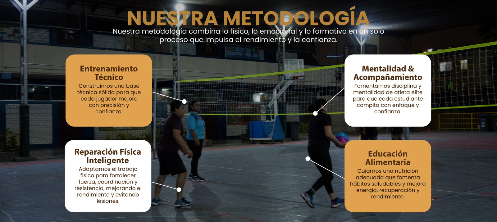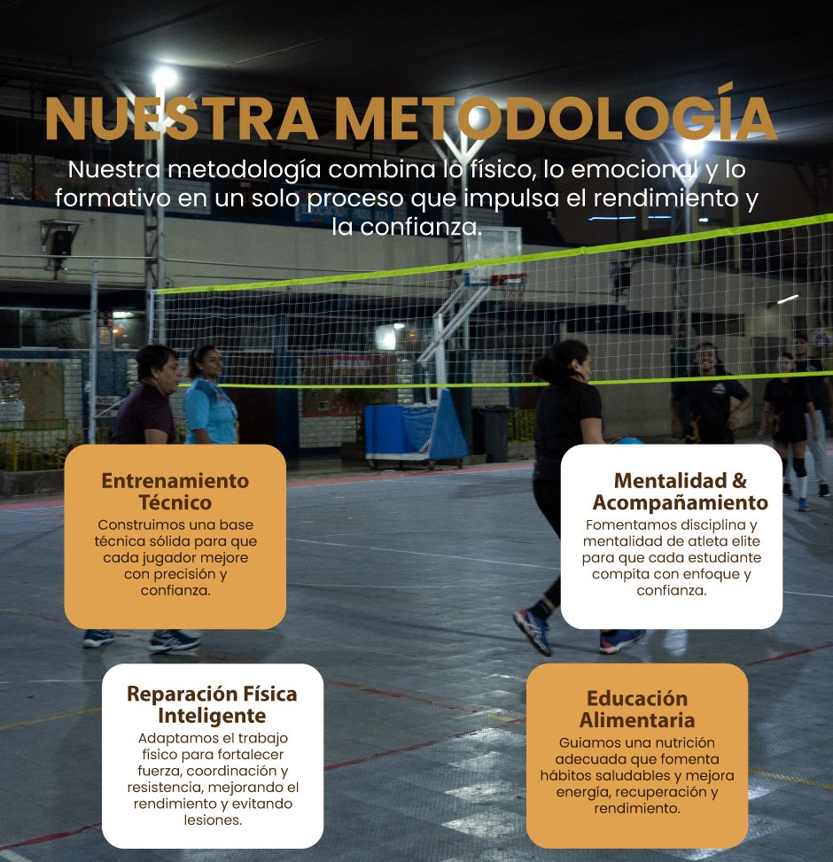 En Cusca Risun hemos creado una metodología donde cada área trabaja de manera integrada para formar deportistas completos. Nuestro entrenamiento no se limita a la técnica del vóley; combinamos el trabajo físico, el acompañamiento emocional y la nutrición para que cada deportista crezca en todas las dimensiones que una atleta necesita.